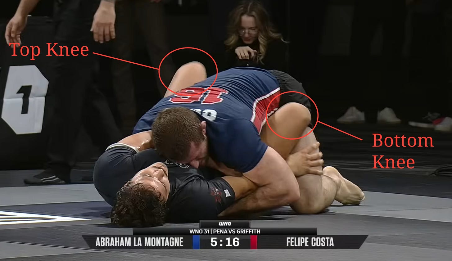 That’s why I claimed before that you usually want your opponent a little bit on their side, because that way, you create a bottom knee and a top knee, and the bottom knee is the side in which we want to pass most of the time.